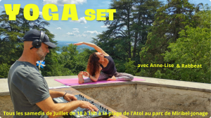 Mêlant les énergies vibrantes du yoga et de la musique live, le Yoga Flow Musique vous invite à un voyage dynamique au cœur du mouvement et du son. Anne-Lise, s’inspirant de son riche passé de danseuse et de musicienne, fusionne le yoga flow dynamique avec des moments relaxants. Tout cela est harmonieusement accompagné par des rythmes éclectiques et revitalisants mixés en live par le talentueux DJ lyonnais, Rabbeat.